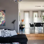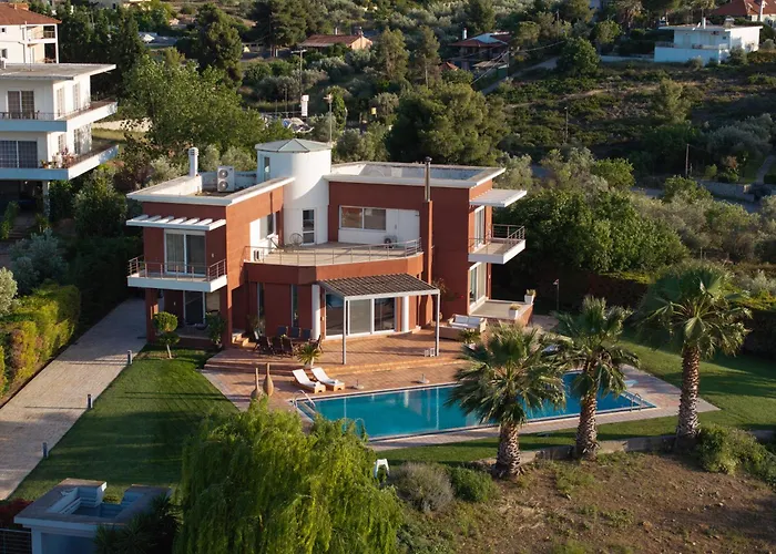 Guests can enjoy a seaside sea view from a terrace at the 4-bedroom 3 Palm Villa Chalkida, 2.6 km from Athanaton Square. Guests can enjoy lawn tennis and ping pong at this villa, located about 10 minutes by car from the Chalkis Beach.